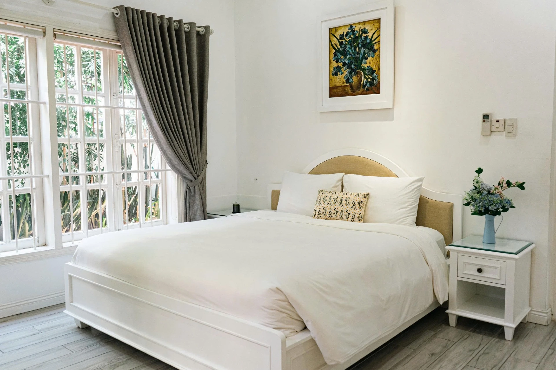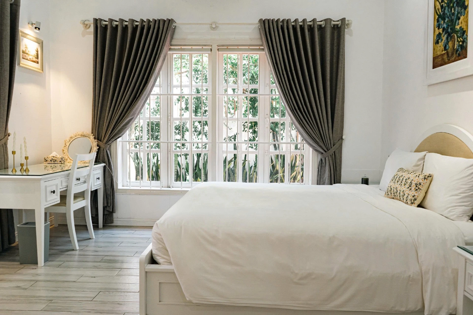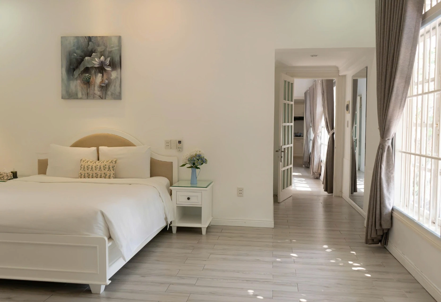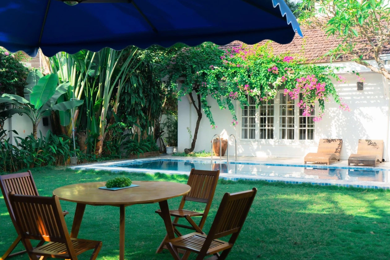 Relax at this tropical 1-story villa in Da Nang, just 5 minutes from My Khe Beach. Enjoy a private pool, lush garden, BBQ, full kitchen, and spacious rooms.