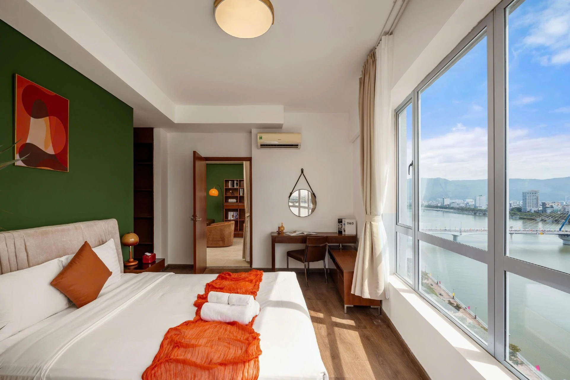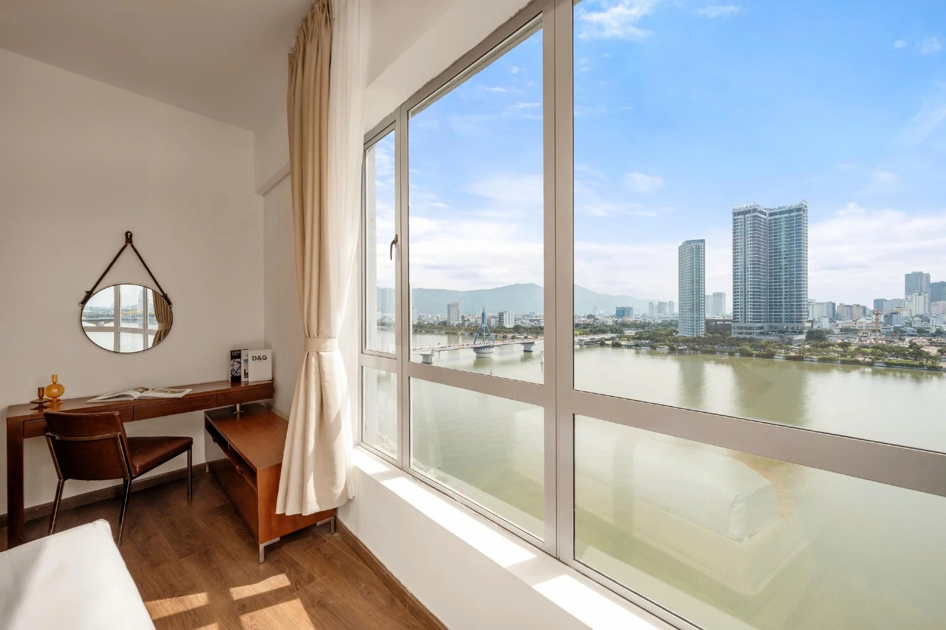 Step into direct views of the Han River, Han Bridge, then enjoy Dragon Bridge’s nightly lights, weekend fire show at 9PM. On bustling Bạch Đằng Street, opposite the river, just 2–3 minutes’ walk from Han Market, this 110m² apt offers home comfort with hotel perks. Watch cruise ships glide by, see Han River Bridge rotation on weekends. Indochina Mall below has cafés, shops, supermarket. With daily housekeeping, free pool, gym, table tennis, it’s ideal for families, ...