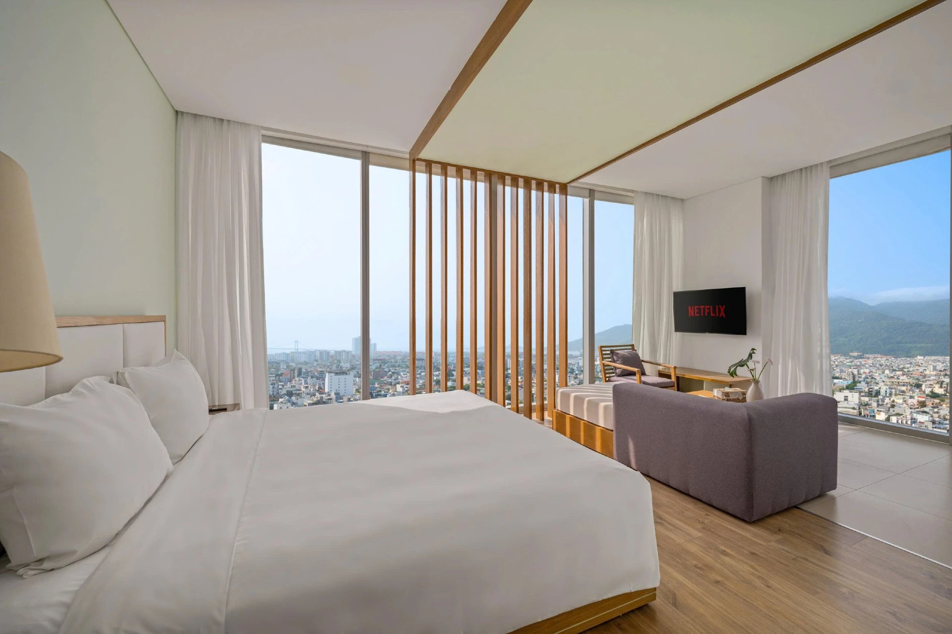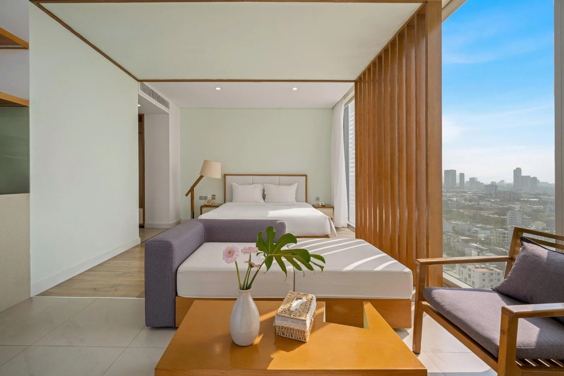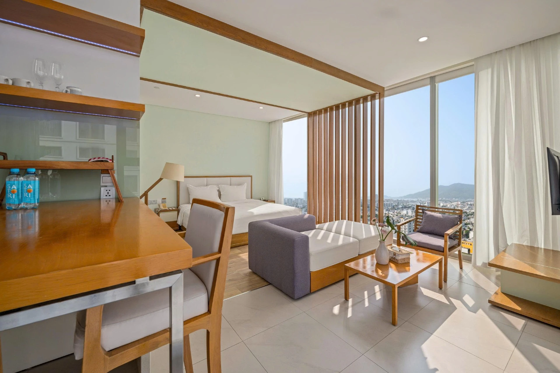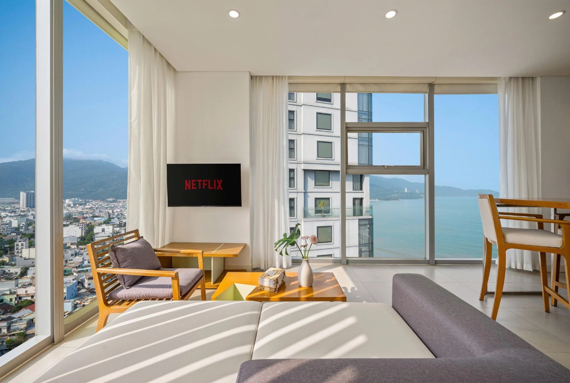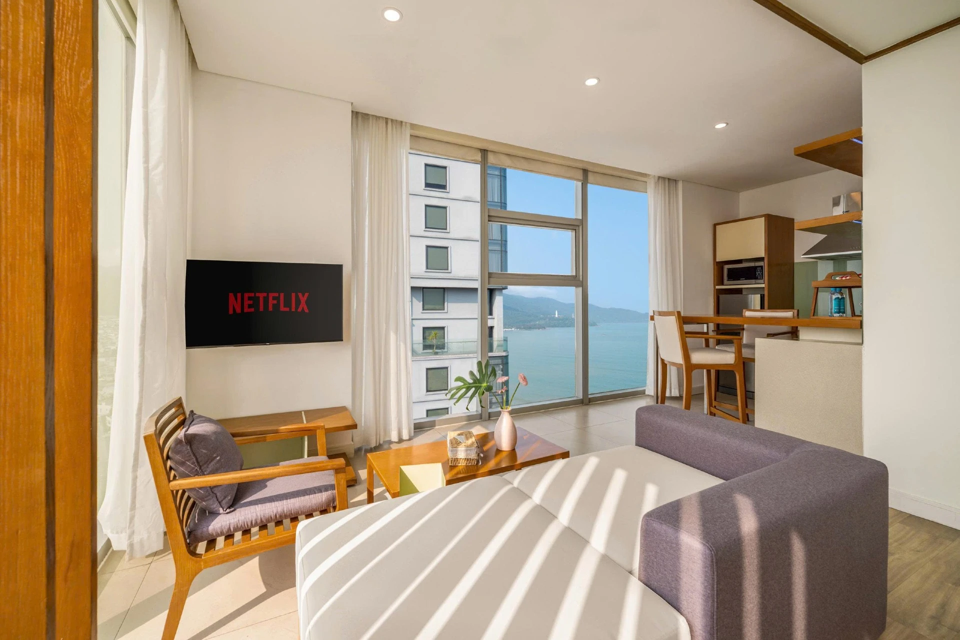 Experience modern luxury in this elegant corner Fusion Suite, a high-end apartment with 4-star furnishings and services, perfectly positioned in front of My Khe Beach.